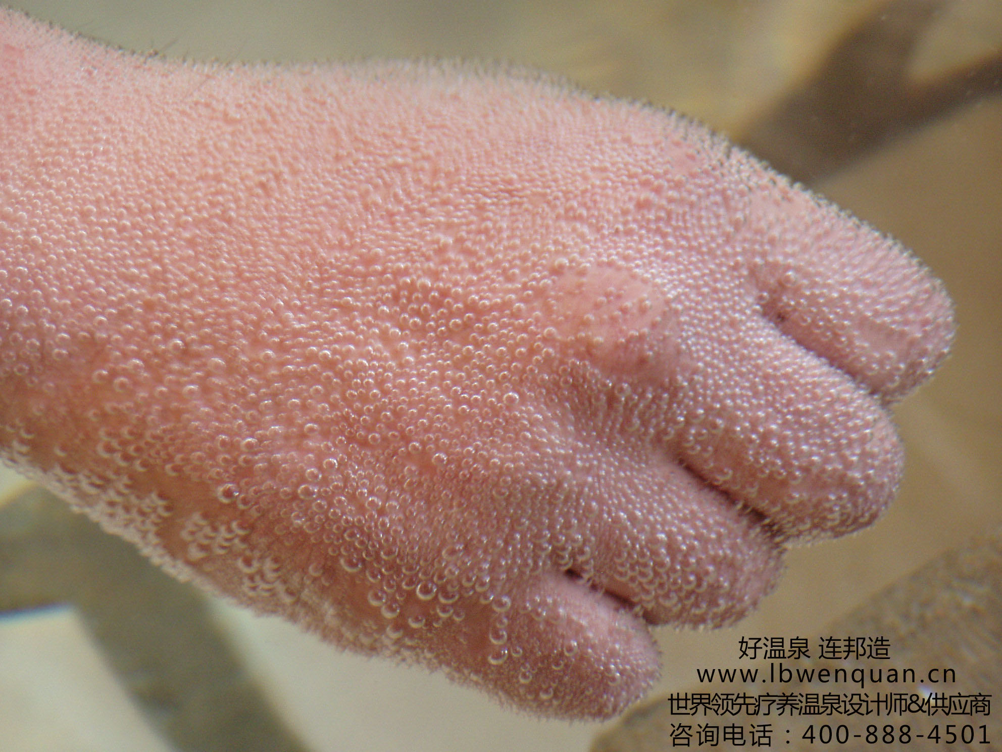 6、碳酸泉內的二氧化碳噴灑在頭皮、頭發上,從皮膚吸收入體內,擴張毛細血管,促進血液運行。