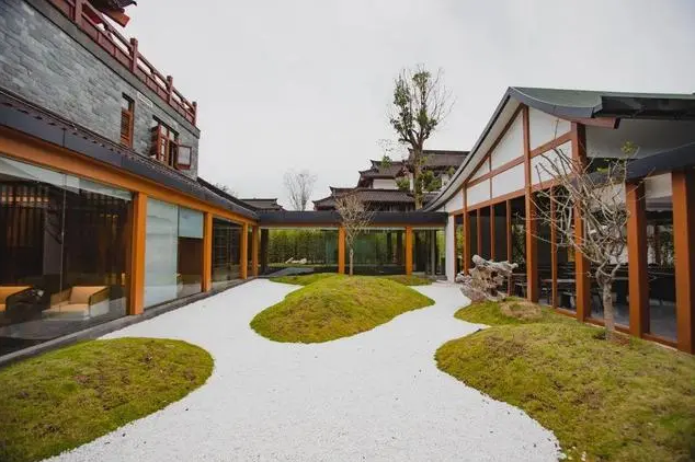 武夷茶湯溫泉迎合漢城建筑風格,通過對傳統的仿漢代建筑元素提煉,融合現代的表現手法,穿插自然的江南園林,從而表達出武夷傳統文化的傳承以及現代生活情調的醞釀。