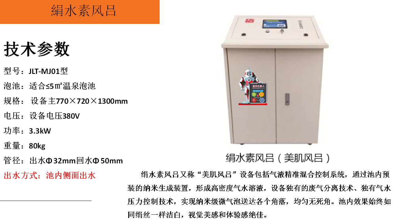 功能及適用人群:人體的活性氧是由紫外線、壓力、吸煙等原因,隨著年齡的逐漸增長積累而成的。它能滲透到體內細胞之中,有選擇性的除去只對健康有害的活性氧。而氣泡會進入因泡湯受熱張開的毛孔內,清除吸附在毛孔中的污垢,入浴后使肌膚變得光滑。