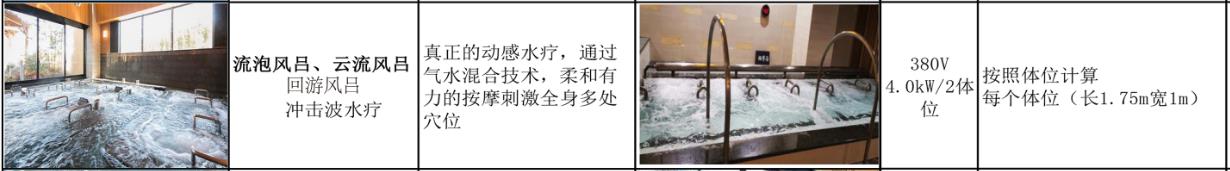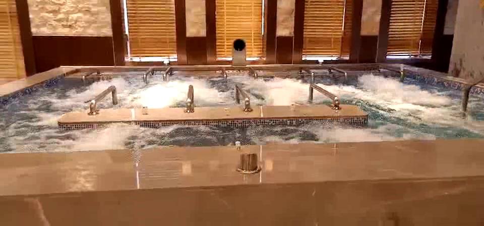 ○超音波水療:超音波氣泡水療是借助天然超音波、超氧負離子和水的加乘效應,超音波氣泡從池子底部進入池內,不斷涌升的氣泡與熱水的溫熱效應相得益彰,產生按摩理療享受。具有排除體內毒素、改善皮膚功能、預防婦科炎癥、強化心臟功能、健脾胃、通經絡、改善全身微循環、激活腦細胞、燃燒多余脂肪、提升免疫力等健康增進作用。