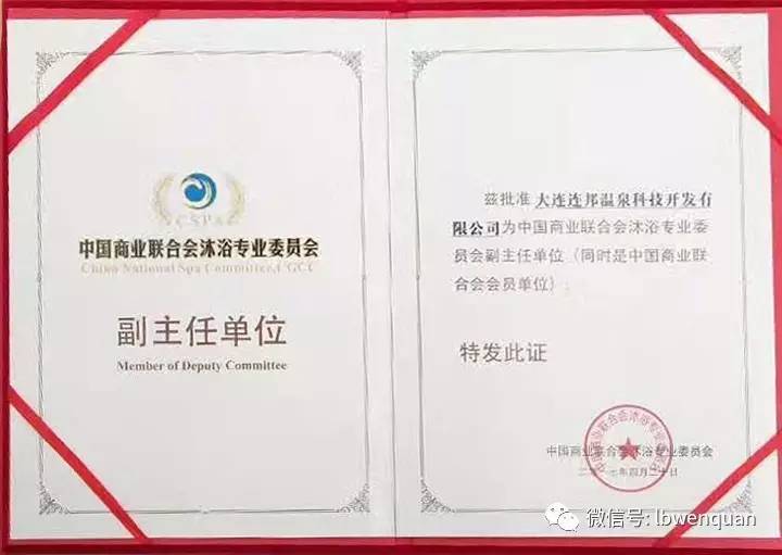 連邦溫泉榮膺"中國沐浴委員會副主任單位"