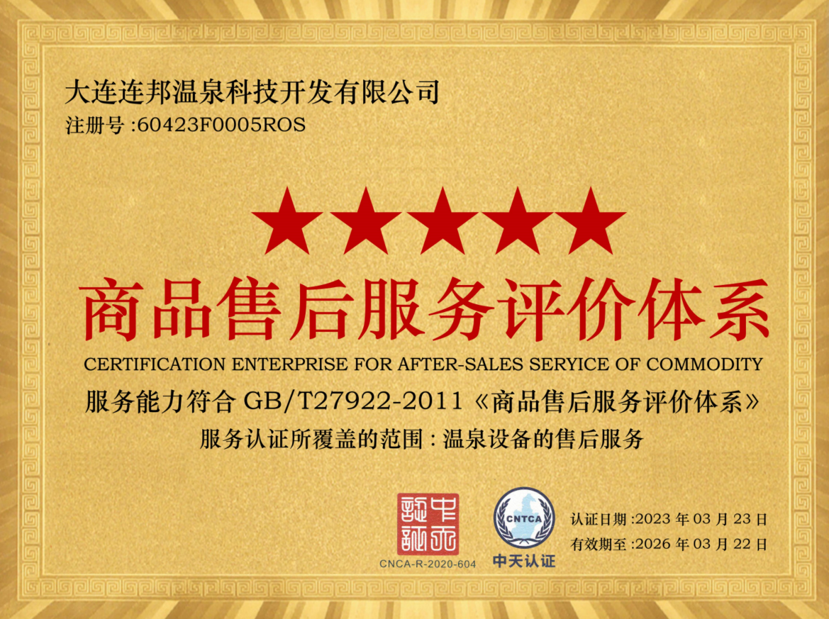 連邦溫泉科技順利通過商品售后服務體系認證(五星級),國家鼓勵企業將售后服務作為開拓市場、提高競爭力的重要途徑,增強服務功能,健全服務網絡,提升服務質量,完善服務體系,價值為以下幾方面: